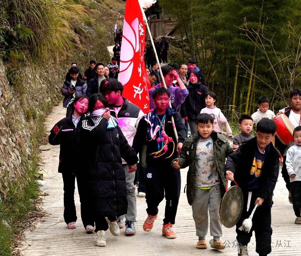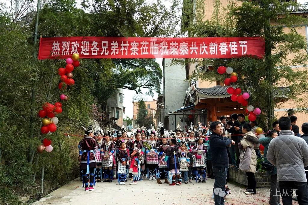 2月16日,从江县下江镇新华村全体村民前往停洞镇党略村走访,开展“吃相思”闹新春活动,增进团结友谊,共祝美好明天。(从江县融媒体中心通讯员 刘华林 潘文胜)。